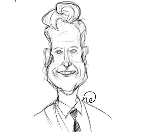 I have been trying to do Caricatures of regular people and I have to say its pretty hard stuff. So sometimes I keep switching between regular folks and celebrities. Somehow some of these stars have the funniest faces. Yesterday i saw this cool blog Elaine Bogan. And she created a Zombie Conan. Since i am trying to do caricatures I figured i would try to do something with him.